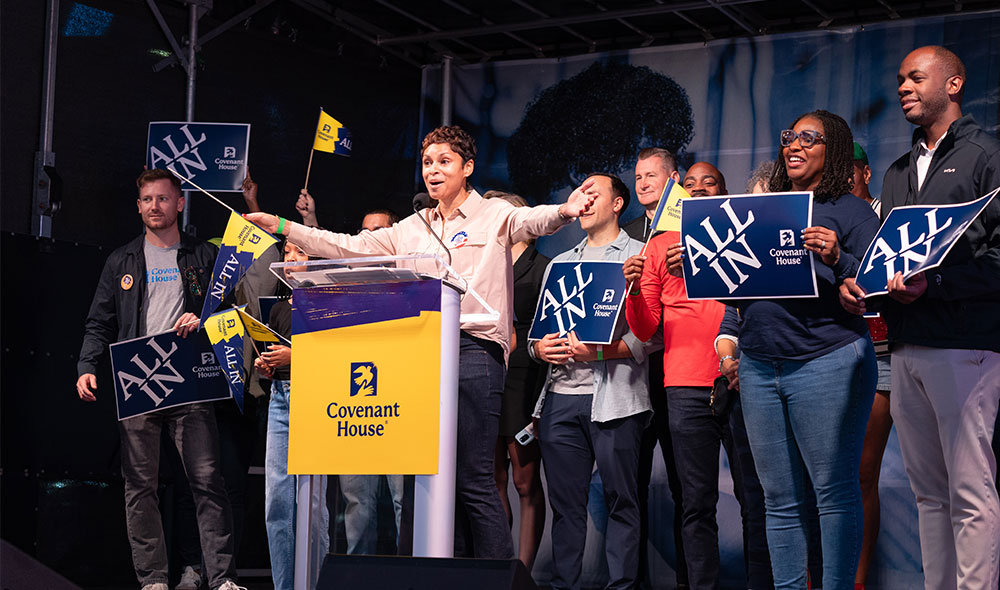 Covenant House is proud to partner with longtime champions and powerhouse advocates for Youth Homelessness Awareness Month, including the Jon Bon Jovi Soul Foundation, Nate Berkus & Jeremiah Brent, Rachel Brosnahan, Brian Cashman, Raúl Castillo, Ariana DeBose, John Dickerson, Jericka Duncan, KEM, The Kid Mero, Audra McDonald, Mötley Crüe, Brynn Whitfield, and thousands of individual volunteers and Sleep Out participants across the globe.